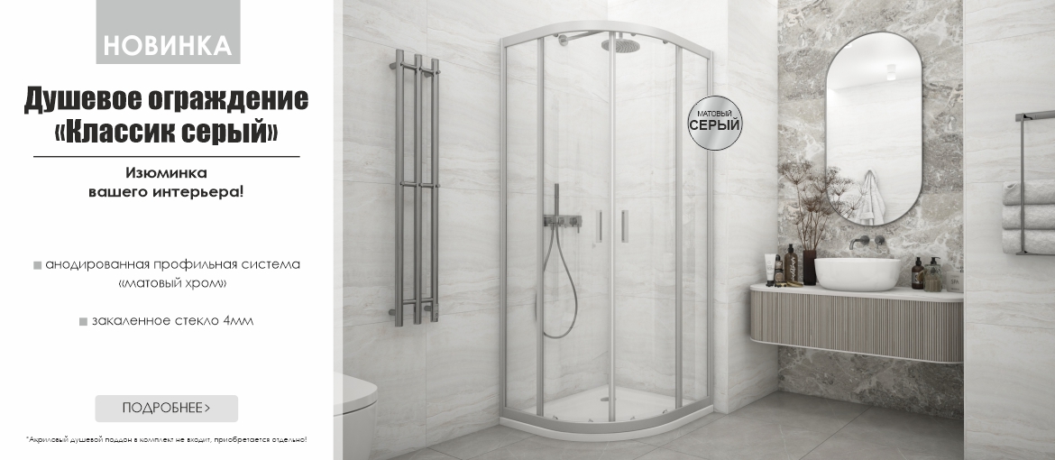 Коллекцию душевых ограждений пополнили изделия «Универсал серый» и «Классик серый», которые способны стать «изюминкой» вашего интерьера!