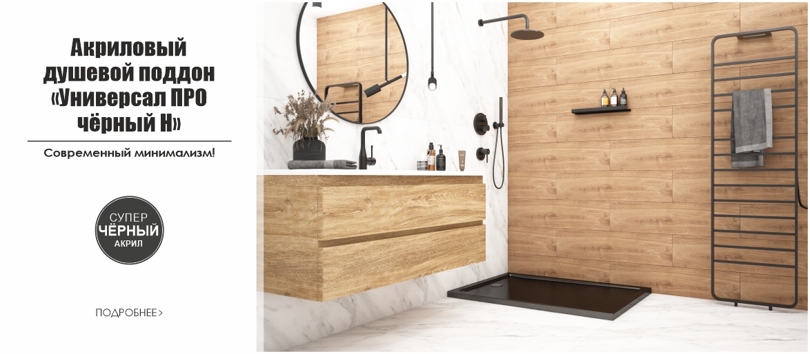 Акриловый душевой поддон "Универсал ПРО чёрный Н"