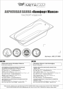 | Модель | Акриловая ванна "Комфорт Макси" |