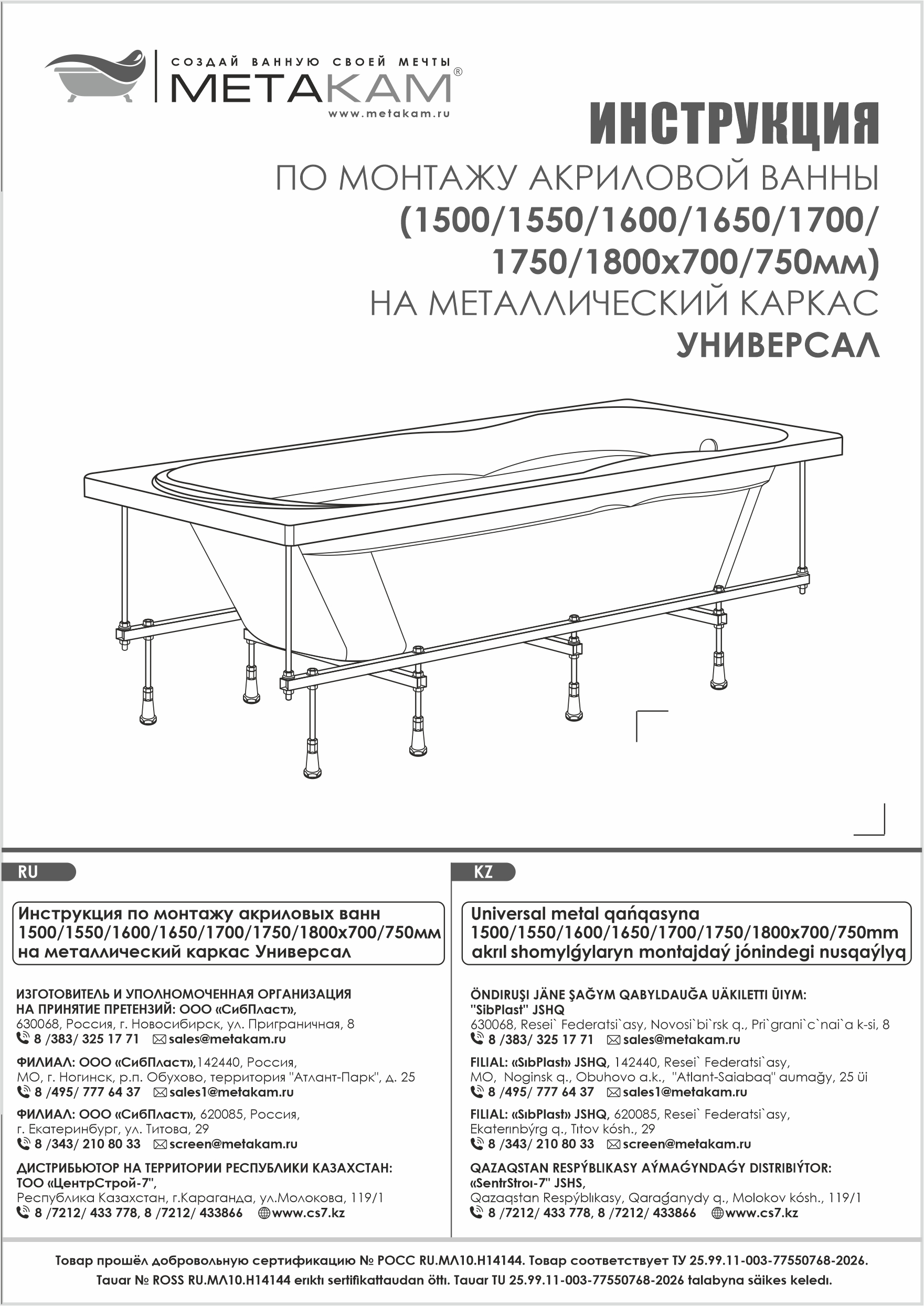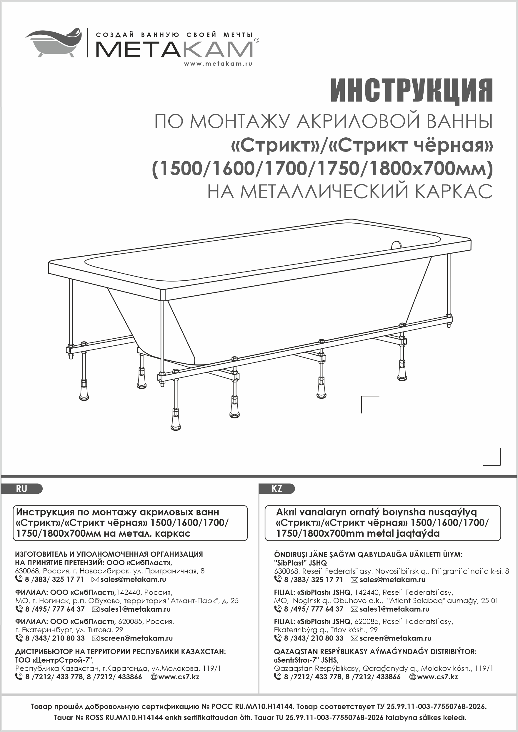 | Модель | Сборно-разборный металлический каркас для ванн "Грейс", "Стрикт", "Стрикт чёрная" |
